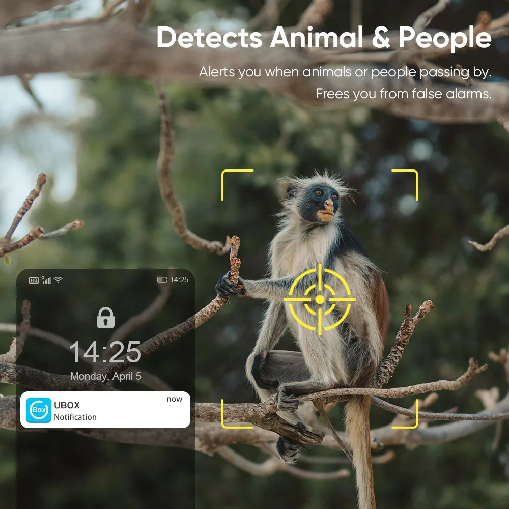The UBox app (iOS/Android) allows you to control the camera remotely, receive real-time alerts, and access live streams. Two-way audio enables communication with visitors or can be used to deter unwanted guests.