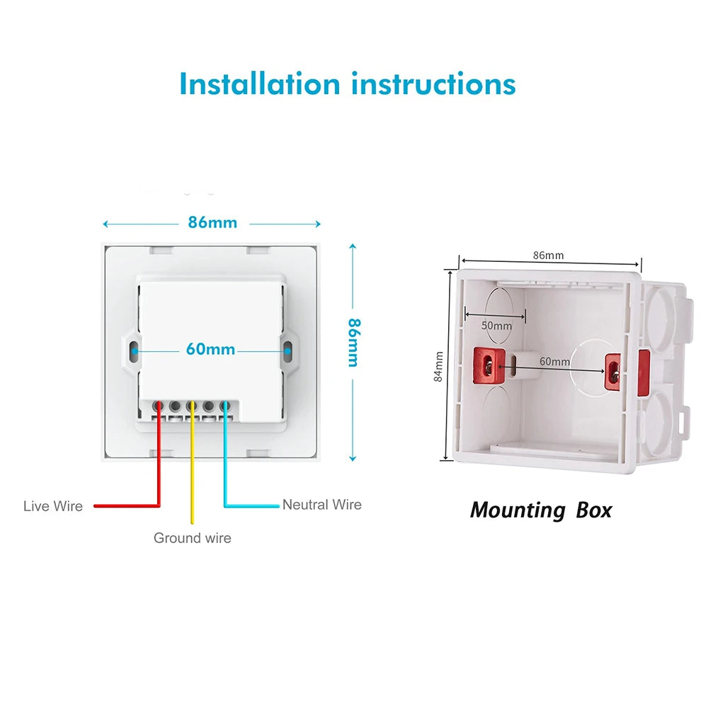 This smart plug is ideal for living spaces or general applications. It allows for easy control of your electrical devices via the "Tuya" or "Smart Life" mobile app and is compatible with voice assistants like Amazon Alexa and Google Home. The plug features USB-A and USB-C ports, a timer function, and can be shared by multiple devices within the app. Thanks to its IP20 rating and glass design, it blends seamlessly into any wall installation.