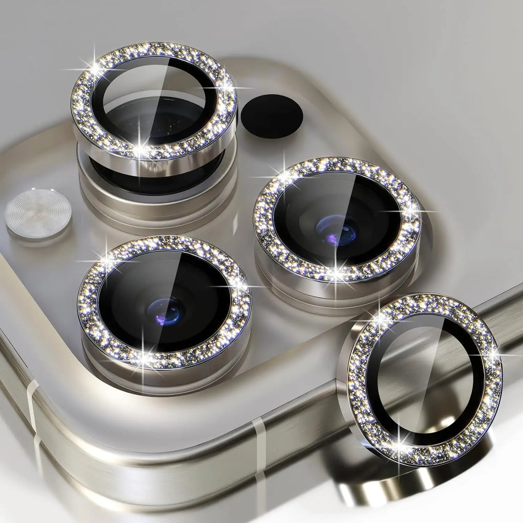 Das Bling-Glitter-Design mit Diamant-Strass verleiht Ihrem Gerät einen luxuriösen Look, während die präzise Passform eine einfache Installation gewährleistet. Die Kombination aus robustem Glas und hochwertigem Titanium-Material sorgt für Langlebigkeit ohne Beeinträchtigung der Kameraqualität.