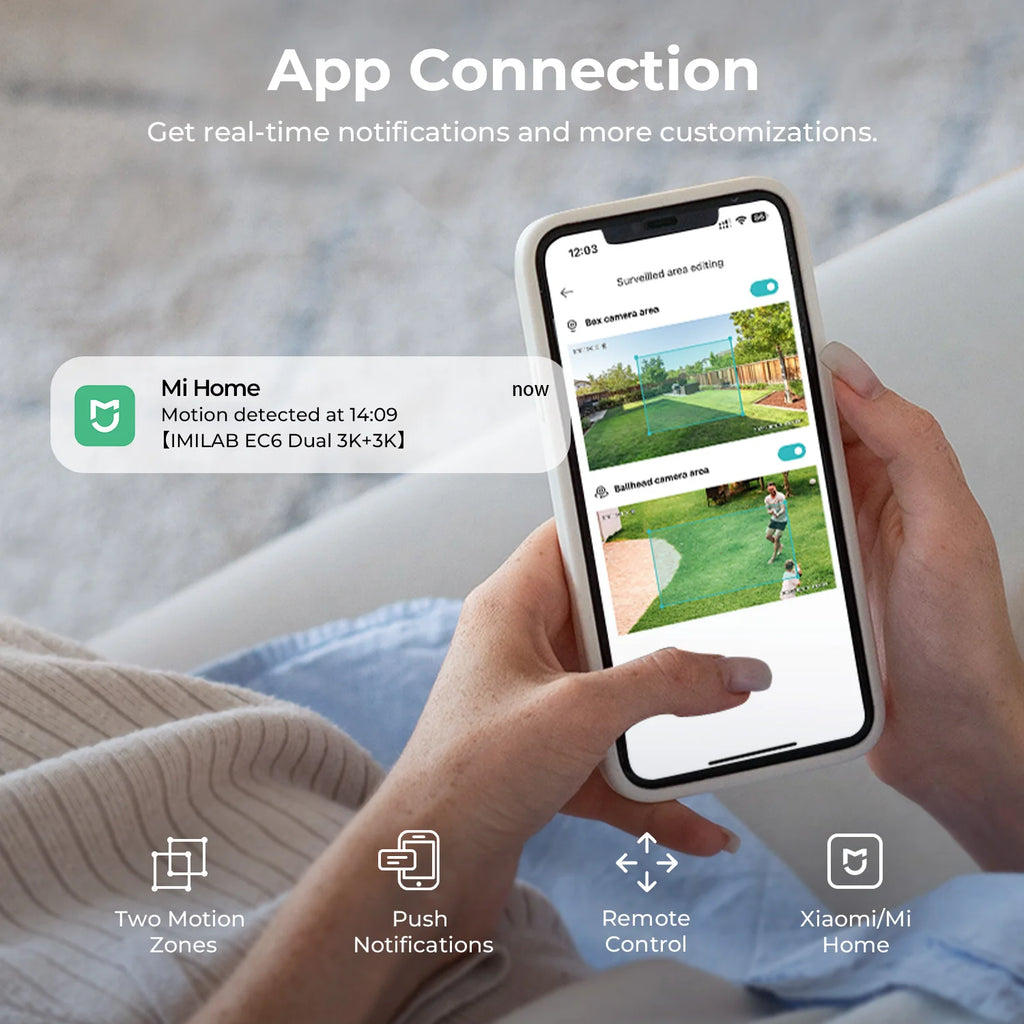 Für mehr Sicherheit verfügt die Kamera über eine intelligente Abschreckungsfunktion: Bei Bewegungserkennung löst sie automatisch einen Alarm mit Sirene, Blitzlicht oder einer individuellen Sprachnachricht aus. Diese Funktionen arbeiten ohne zusätzliche Abonnements. Die EC6 Dual unterstützt sowohl WLAN- als auch kabelgebundene Netzwerkverbindungen, was eine flexible Installation an Decke, Wand oder Pfosten ermöglicht.