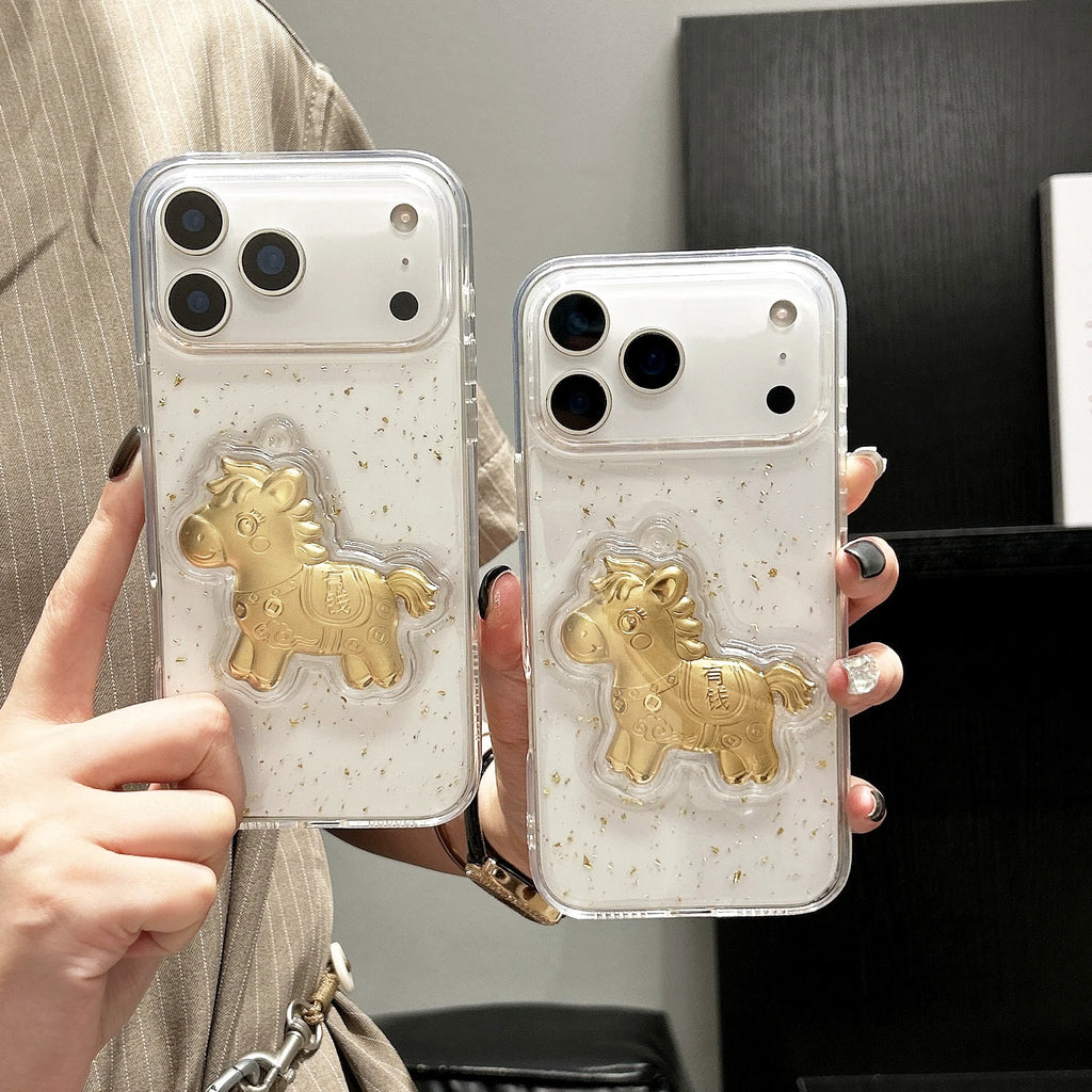 3D Cartoon Goldfolie Glitzer Hülle für iPhone – Stoßfest & Transparent