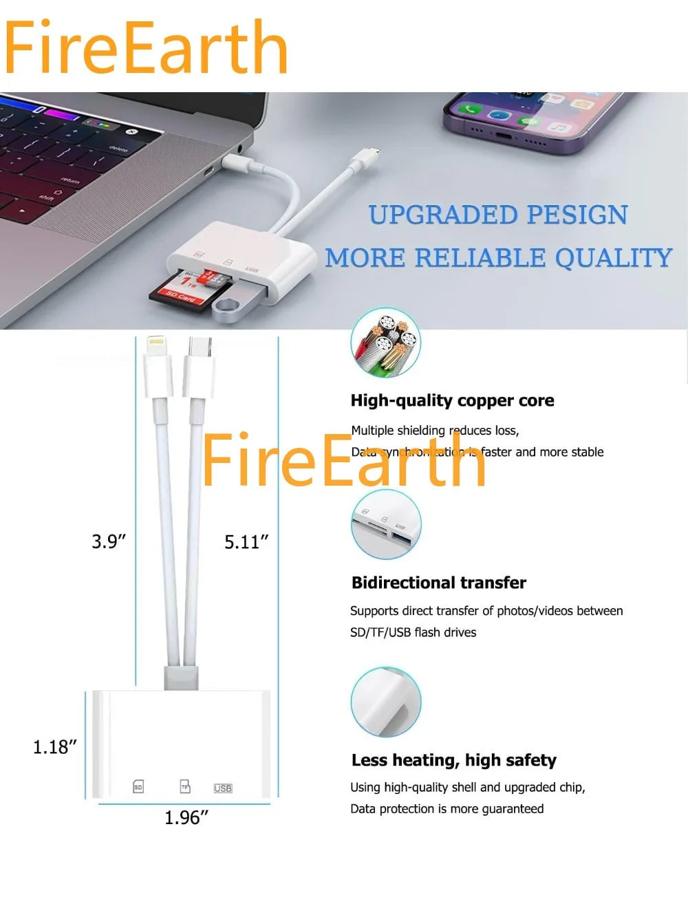 Der USB-C und Lightning Kartenleser ist ein vielseitiger Adapter für iPhone, iPad, MacBook, digitale Kameras und weitere Geräte. Er unterstützt SD-, Micro SD- (TF) Karten sowie USB-Sticks und ermöglicht das Anschließen von Gamecontrollern, USB-Kopfhörern, E-Gitarren oder MIDI-Tastaturen. Mit Plug & Play können Daten einfach importiert oder exportiert werden, ohne zusätzliche Treiber oder Ladegeräte. Die Hochgeschwindigkeits-Datenübertragung von bis zu 5 Gbit/s ermöglicht schnelles Lesen und Schreiben von Dateien auf mehreren Medien gleichzeitig.