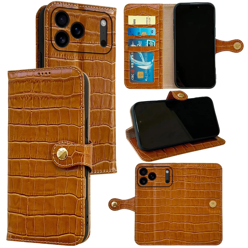 iPhone 17 Pro Max Echtleder Krokodilleder Hülle mit Ständer & Kartenetui – Stoßfest, Anti-Fingerprint, Leicht & Stilvoll
