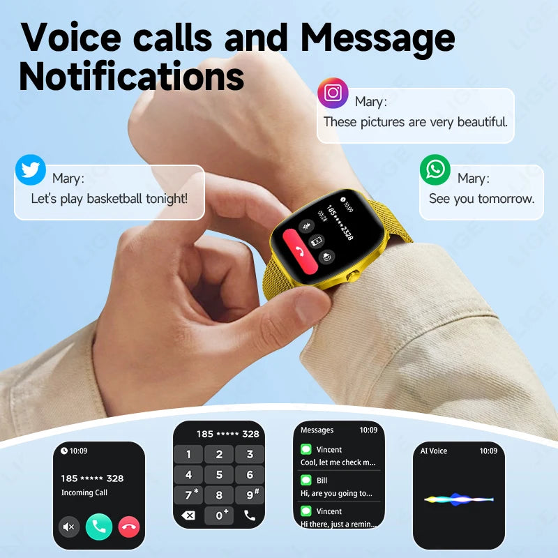 Diese modische Smartwatch bietet ein großes 1,83 Zoll IPS-TFT-Display mit einer Auflösung von 240 × 284 Pixeln. Der quadratische Bildschirm ist berührungsempfindlich und ermöglicht eine einfache Bedienung. Die Uhr ist mit einem robusten Gehäuse aus Legierung ausgestattet und das Silikongel-Armband ist abnehmbar und bequem zu tragen.