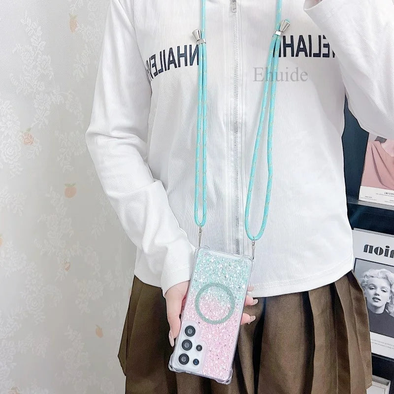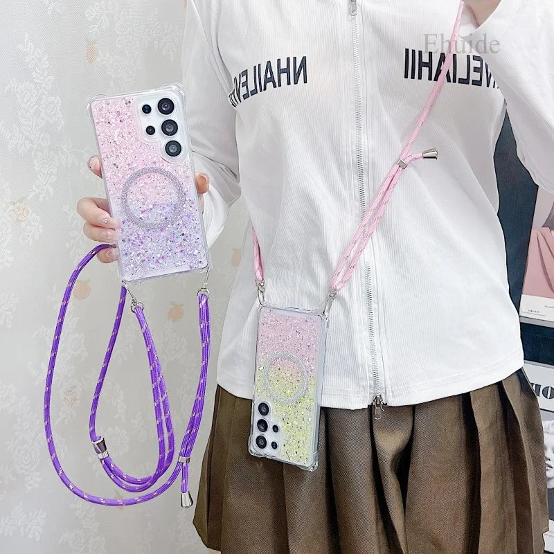 Glitzer Crossbody Hülle mit Magnetband für Samsung Galaxy S24 & S25 – Stoßfest & Stylisch