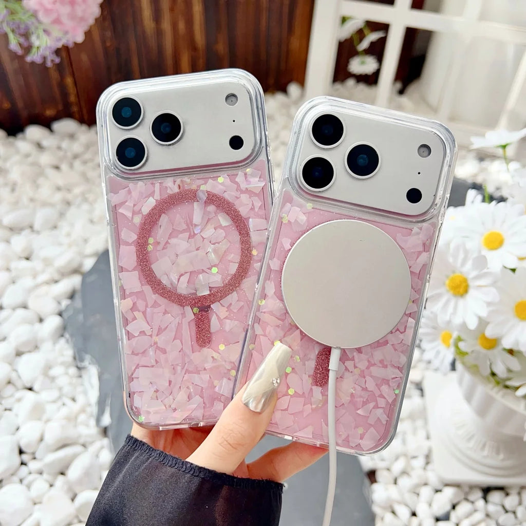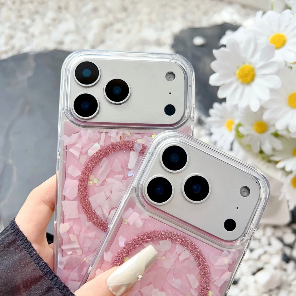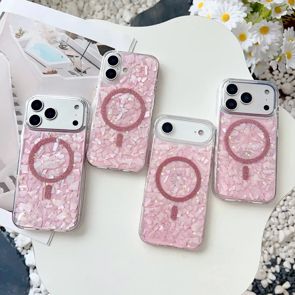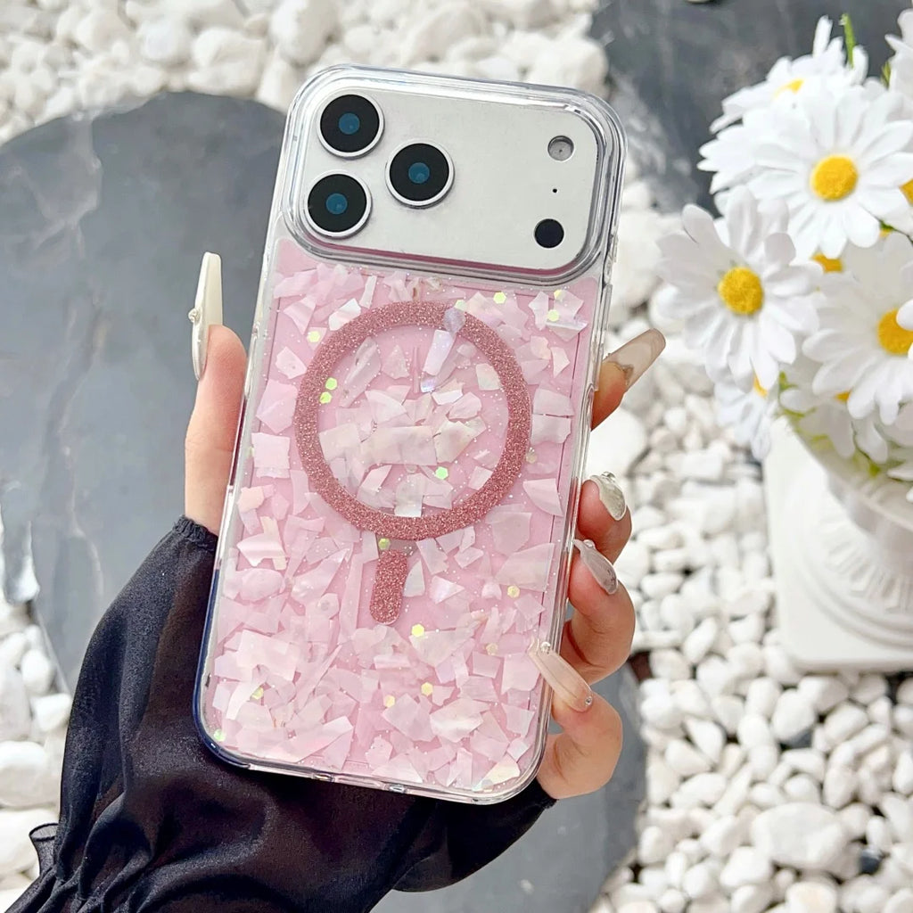 iPhone 17 Pro Max Hülle Rosa Glitzer Muschelmuster – Magsafe kompatibel, Stoßfest, Leicht, Weiches TPU Case mit Vollschutz