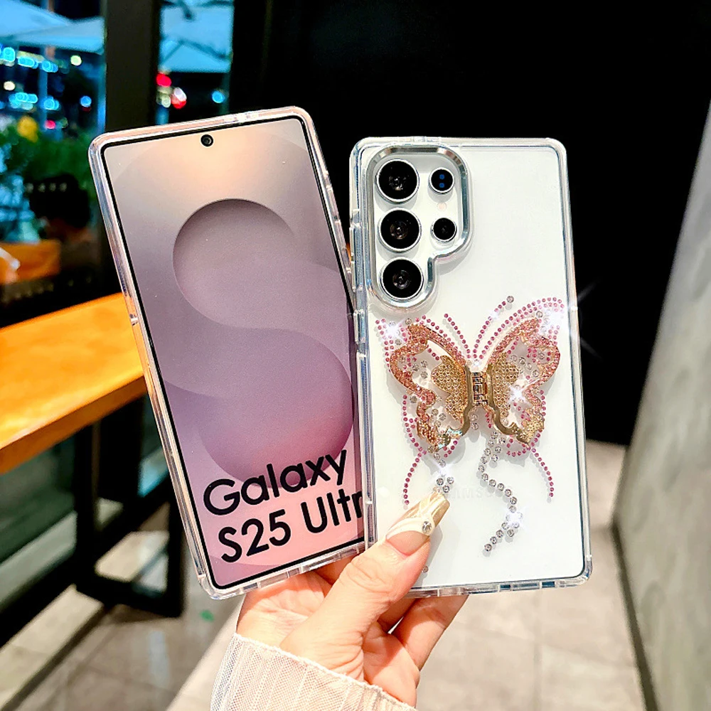 HD Transparent Acryl Hülle für Samsung S23 S24 S25 Ultra Bling Butterfly
