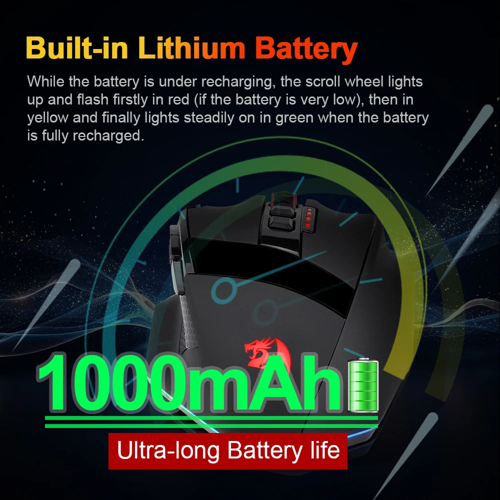 Sie verfügt über neun Tasten inklusive DPI-Umschalter und ist mit langlebigen Teflon-Mausfüßen sowie einem rutschfesten Scrollrad ausgestattet, um kontrollierte und flüssige Spieleingabe zu gewährleisten. Mit einer Akkulaufzeit von bis zu 35 Stunden (bei aktivierter RGB-Beleuchtung) und 70 Stunden (ohne Beleuchtung) steht langes Gaming ohne Unterbrechung im Vordergrund. Das Gewicht von 320 Gramm sorgt für Stabilität, während das ergonomische Design auf die Nutzung der rechten Hand ausgelegt ist.