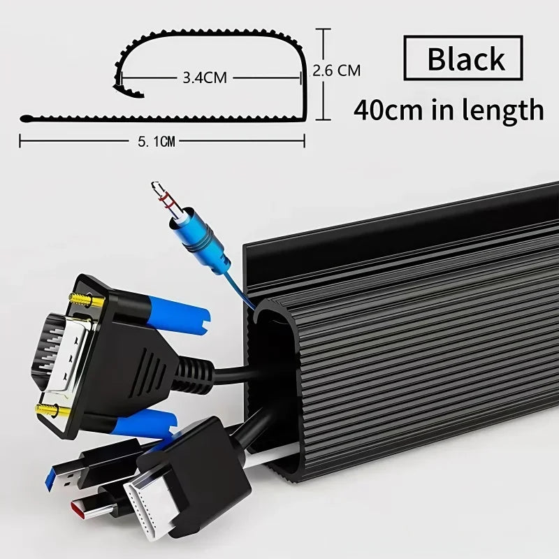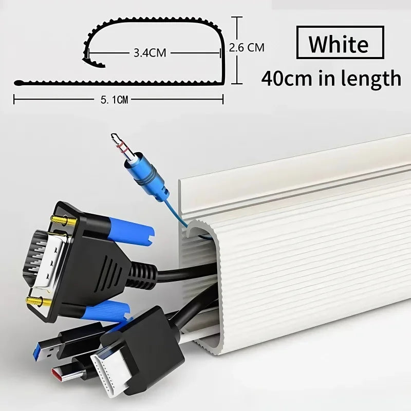 Dieses Kabelmanagement unter dem Schreibtisch bietet eine effiziente und saubere Lösung zur Organisation von Kabeln in Ihrem Heimbüro oder Arbeitsplatz. Hergestellt aus hochwertigem PVC-Material, ist das Kabelkanal-Raceway langlebig, flexibel und einfach zu installieren. Mit einer Länge von 40 cm und einer kompakten Größe von 3,4 x 2,6 cm lässt sich der Kabelschutz problemlos auf jede glatte Bodenoberfläche auftragen, ohne Bohren oder komplizierte Werkzeuge.
