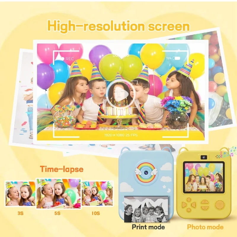 Mit dieser Kinder‑Sofortdruckkamera erhalten Kinder im Alter von ca. 3 bis 12 Jahren ein kreatives und interaktives Fotospielzeug, das Foto‑ und Druckspaß in einem vereint. Die Kamera unterstützt HD‑Video in 1080P und ermöglicht damit lebendige Aufnahmen sowie das Speichern und Anschauen von Fotos. Dank der Sofortdruckfunktion können Kinder ihre Bilder unmittelbar nach der Aufnahme auf Thermopapier drucken – ein spannender Effekt mit besonderer Lern‑ und Spielkomponente.