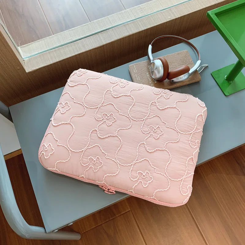 Diese koreanische Laptop-Hülle ist speziell für MacBook Pro 13, MacBook Air 13 und MacBook Pro 14 Zoll sowie für Tablets von 9,7 bis 11 Zoll konzipiert. Hergestellt aus hochwertigem Polyester-Material, bietet die Hülle zuverlässigen Schutz vor Kratzern, Staub und leichten Stößen. Das blumige Design verleiht der Tasche einen modischen, femininen Look und eignet sich ideal für Frauen und Mädchen, die ihren Laptop stilvoll transportieren möchten.