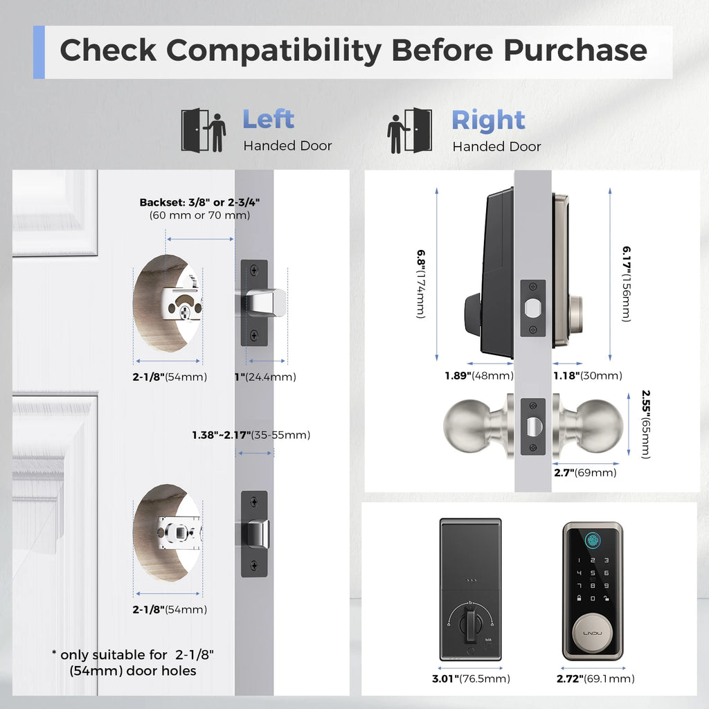 Die Installation ist denkbar einfach und erfordert kein spezielles Werkzeug – nur einen Schraubendreher. Das Schloss passt für Türstärken von 35 mm bis 55 mm und ist sowohl für linke als auch rechte Türanschläge geeignet. Die Rückseitenlänge beträgt 60 mm oder 70 mm, was eine hohe Kompatibilität mit gängigen Türmodellen gewährleistet.
