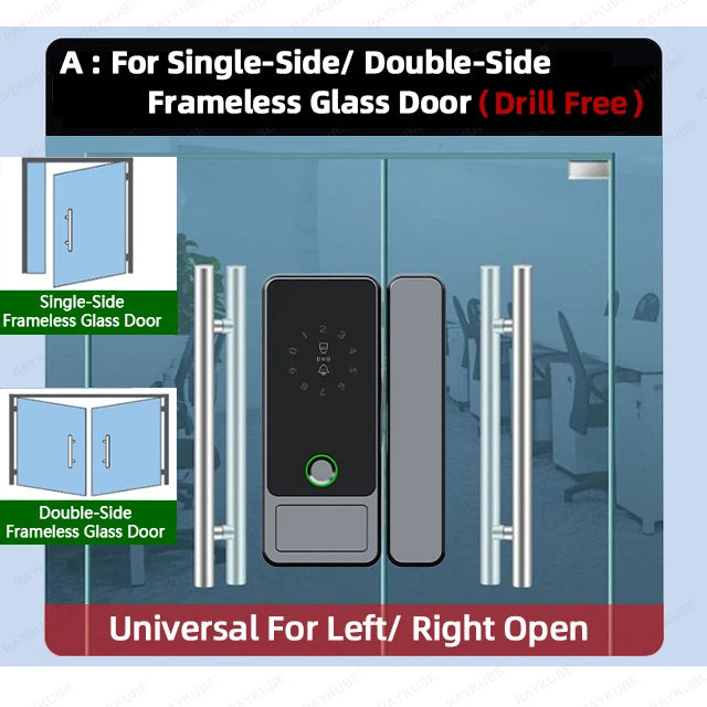 Intelligentes Glastürschloss mit Fingerabdruck, App, IC-Karte & Passwort – RAYKUBE G18 Bluetooth Tuya Schloss für Büro & Zuhause