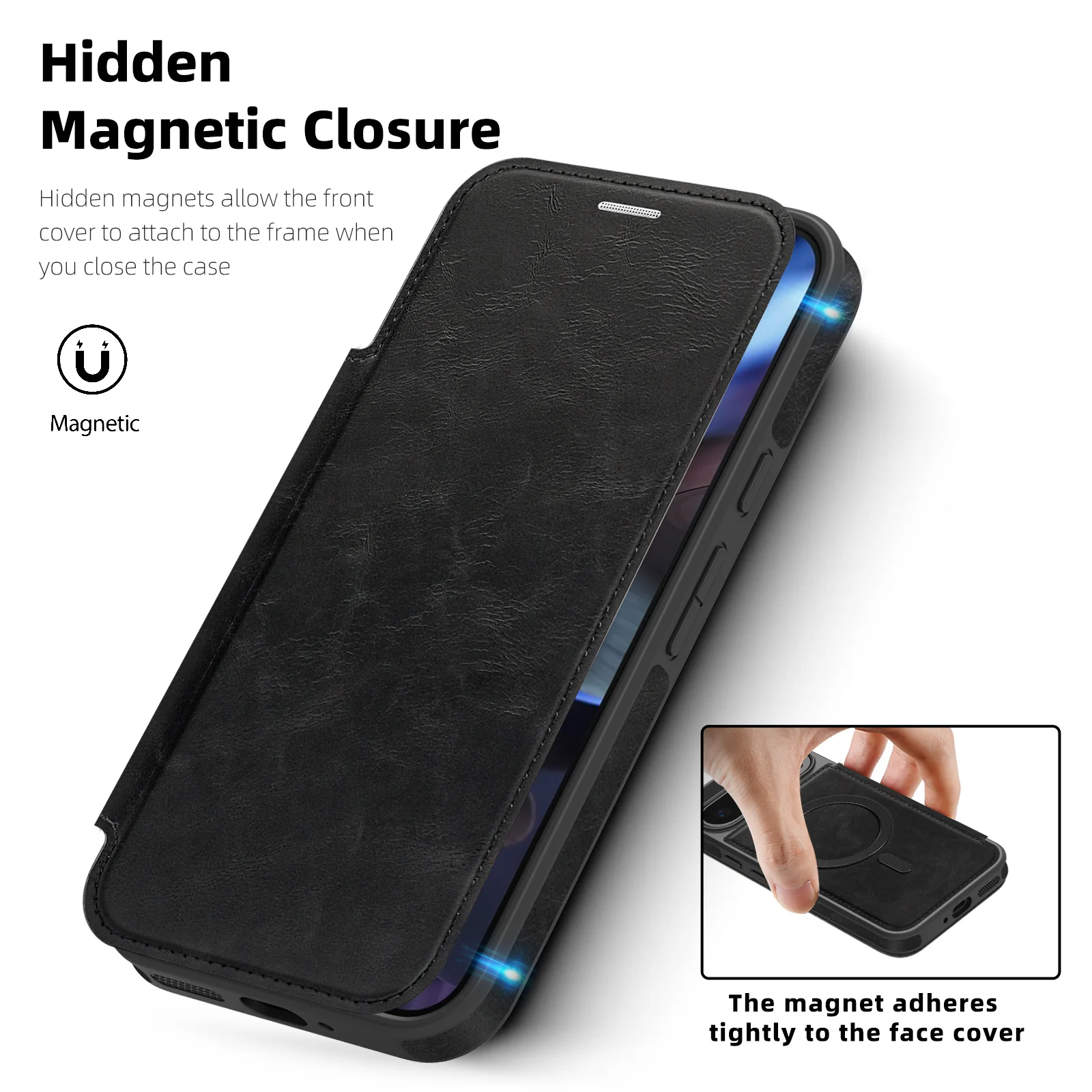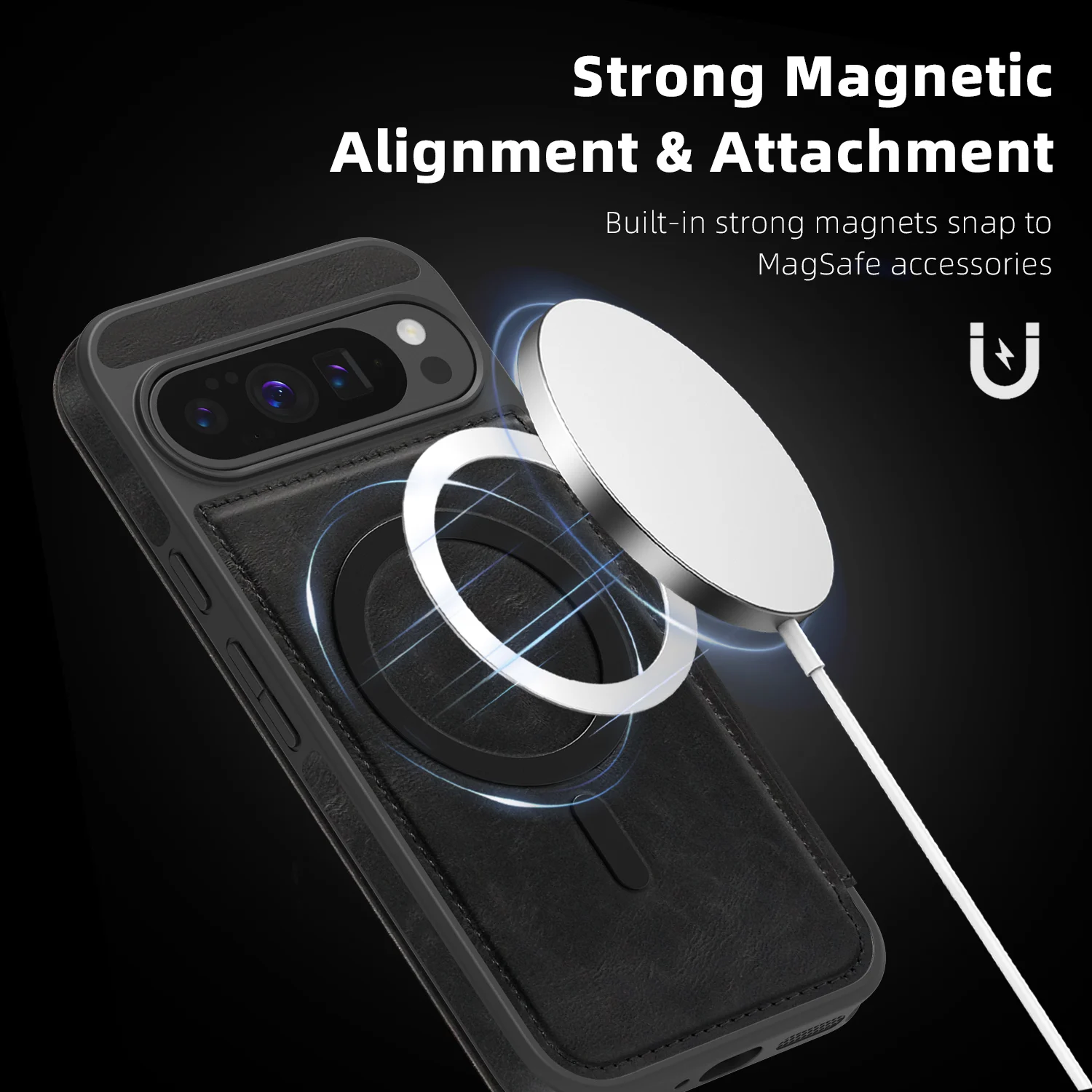 Die Hülle verfügt über ein magnetisches Flip-Design, das das Display sicher schützt und gleichzeitig Magsafe-kompatibel ist, sodass kabelloses Laden ohne Entfernen der Hülle möglich ist. Die Dual-Layer-Struktur sorgt für stoßfesten Schutz, während die rutschfeste Oberfläche und Anti-Fingerprint-Technologie das Gerät vor Kratzern, Fingerabdrücken und versehentlichem Herunterfallen schützt.