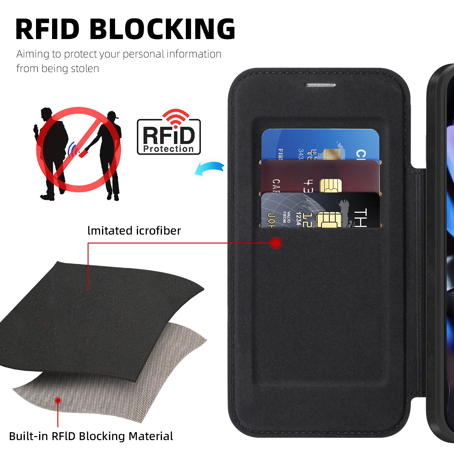 • Funktionen: RFID-Blocker, Magnetisch, Stoßfest, Anti-Fingerprint, Anti-Kratz, Staubdicht, Rutschfest, Dual-Layer, Mit Kartenfach, Halterung und Ständerfunktion