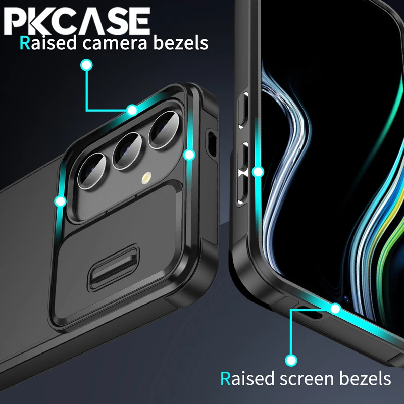 Diese robuste Sliding-Kamera-Handyhülle wurde speziell für Samsung Galaxy S23, S24 und S25 entwickelt und bietet zuverlässigen Schutz in einem modernen, funktionellen Design. Die Hülle besteht aus einer widerstandsfähigen TPU+PC-Doppelschicht, die Stöße effektiv absorbiert und Ihr Smartphone sicher vor täglichen Schäden schützt.