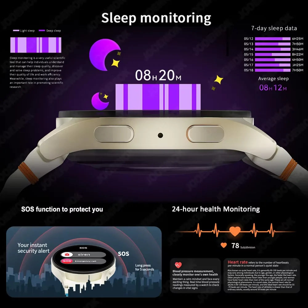 Diese moderne Smartwatch vereint stilvolles Design mit umfassenden Funktionen zur Gesundheits- und Fitnessüberwachung. Mit ihrem runden 1,3-Zoll-AMOLED-Display mit 360x360 Pixeln bietet sie ein klares und reaktionsschnelles Benutzererlebnis. Sie eignet sich ideal für Erwachsene, die ihren Alltag smarter gestalten und ihre Aktivitäten gezielt verfolgen möchten.