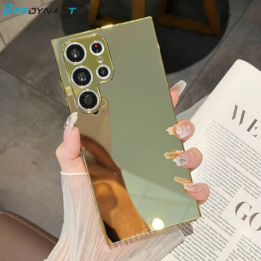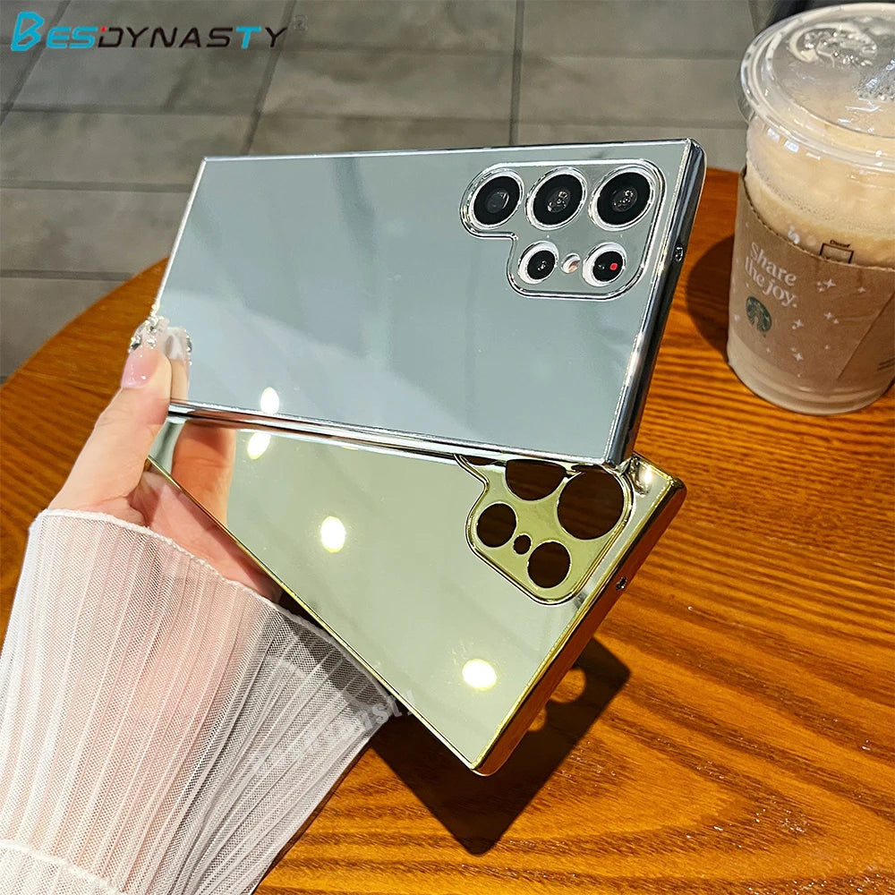 Elegante Spiegel-Hardcase Hülle für Samsung Galaxy S25 S24 S23 S22 Ultra – Silber & Gold – Glänzende Galvanik-Schutzhülle