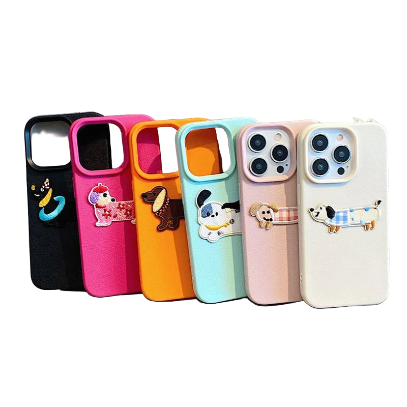 Süße 3D Hund Handyhülle mit Stickerei für iPhone