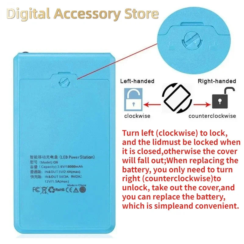Die tragbare DIY Powerbank Hülle ist eine hochwertige, wiederaufladbare Batterielösung für unterwegs. Sie kann mit bis zu 6 x 18650-Lithiumbatterien ausgestattet werden (Batterien nicht im Lieferumfang enthalten) und bietet maximale Flexibilität für Smartphone-Nutzer. Dank des integrierten LCD-Digitaldisplays haben Sie jederzeit die Kontrolle über die verbleibende Kapazität, Spannung und Stromstärke.