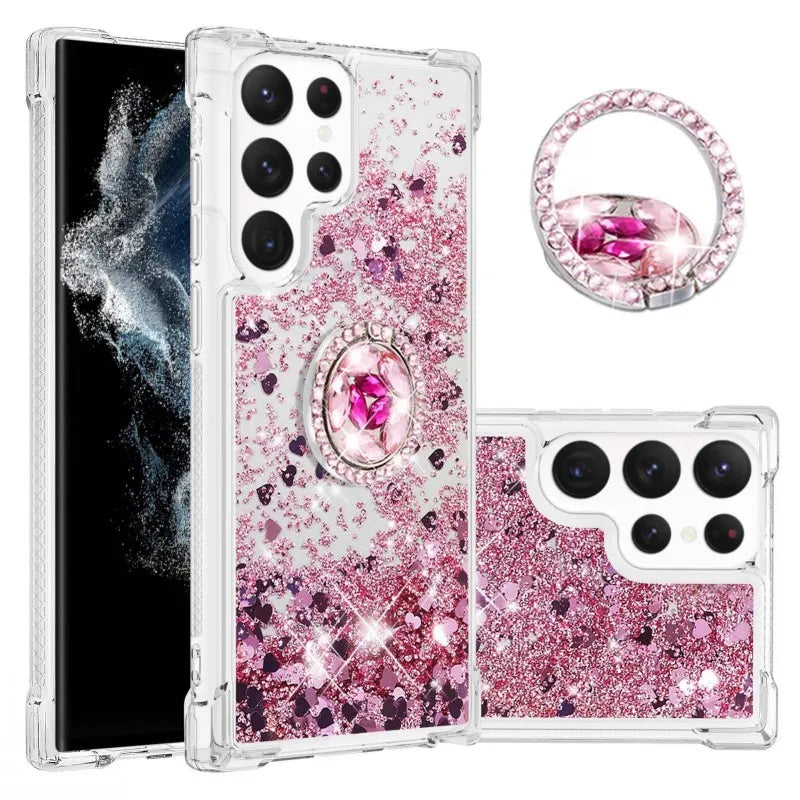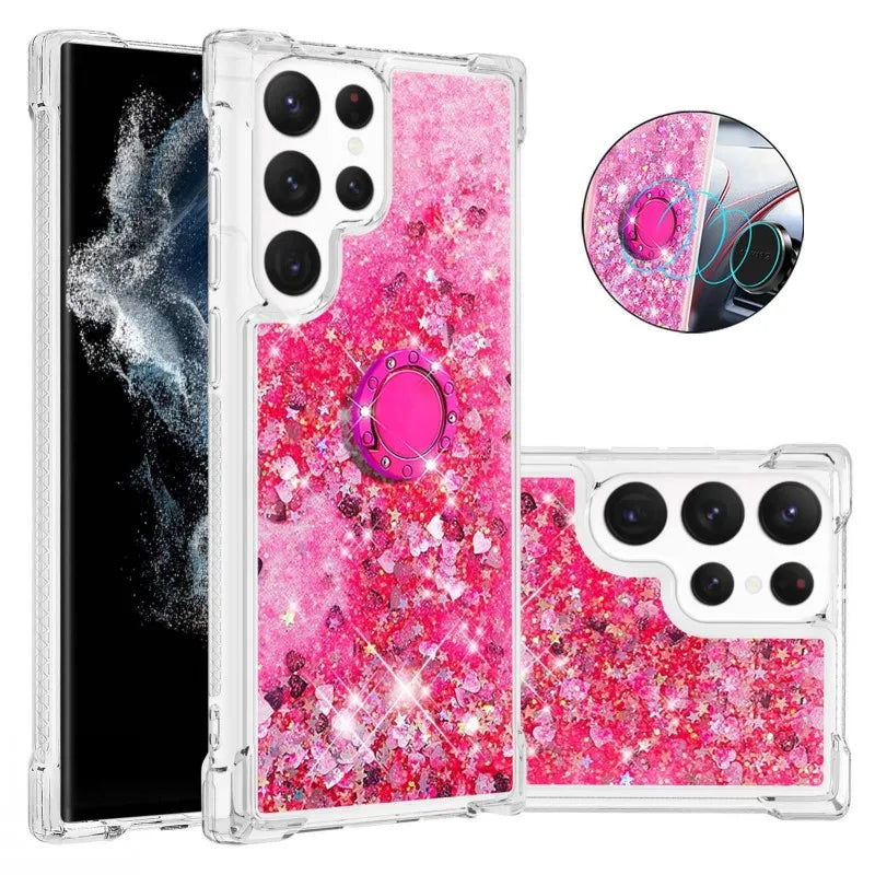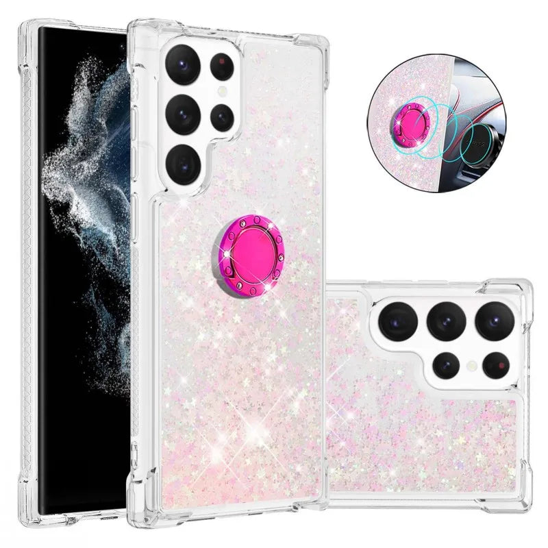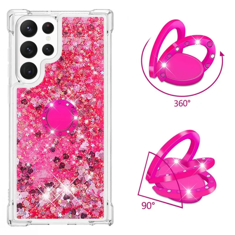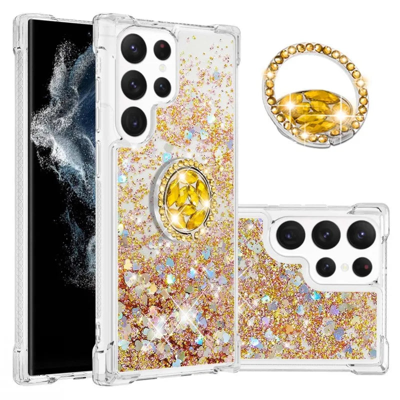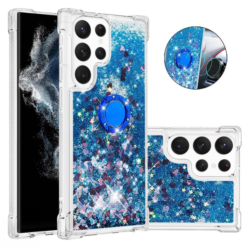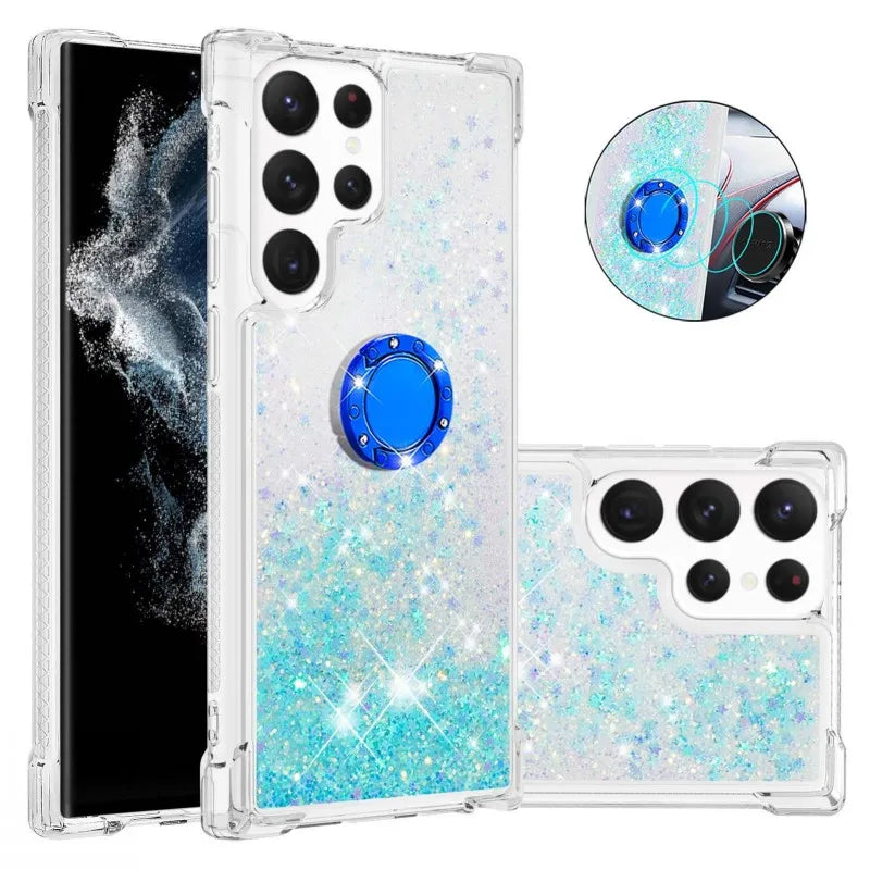 Glitzer Treibsand Hülle mit Ring für Samsung S24 S25 Ultra