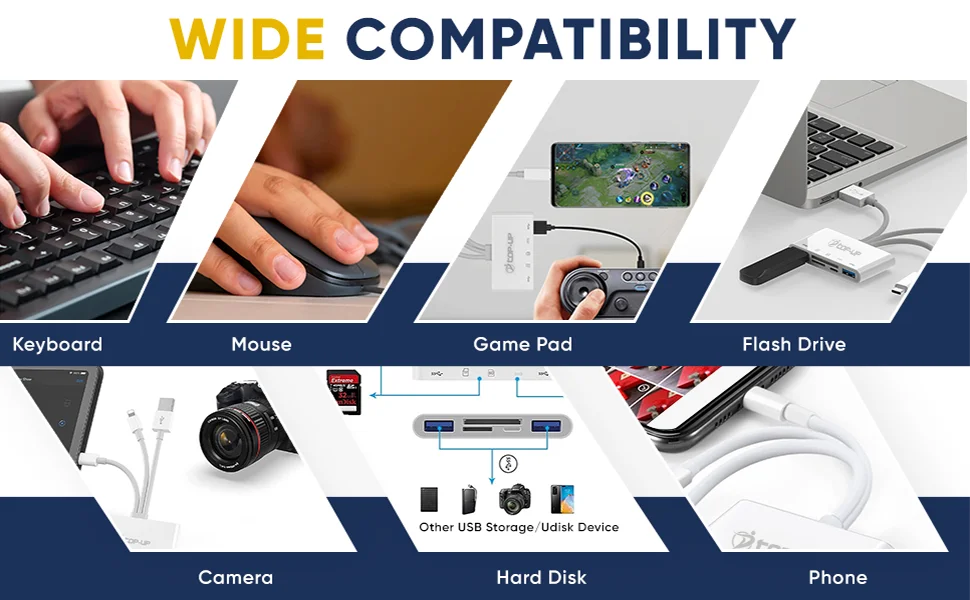 Unterstützt iOS 12.0+ (iPhone/iPad), OTG-fähige Android-Geräte und Computer mit Typ-C- oder USB-A-Anschluss.