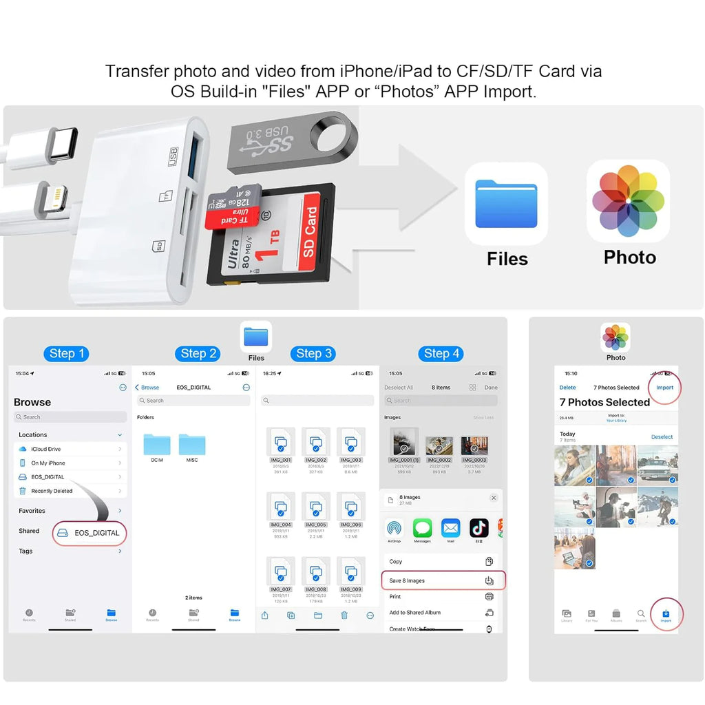 4-in-1 SD & MicroSD Kartenleser Typ-C für iPhone iPad Android