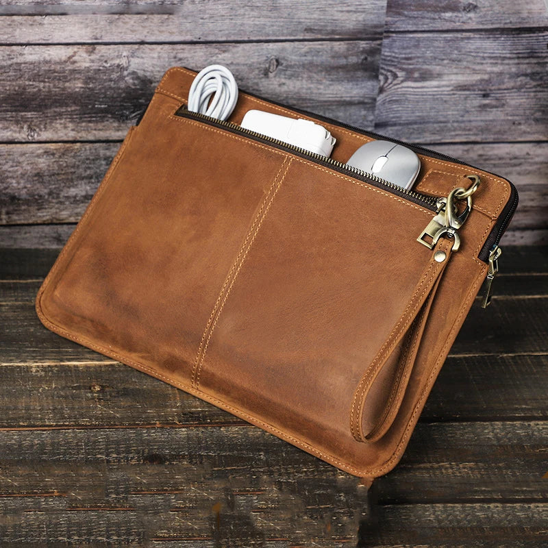 Hergestellt aus robustem Echtleder, schützt die Hülle zuverlässig vor Kratzern, Staub und leichten Stößen. Das kompakte, minimalistische Design sorgt dafür, dass die Tasche leicht zu transportieren ist und in Aktentaschen, Rucksäcken oder einfach als Handtasche verwendet werden kann. Der stabile Reißverschluss gewährleistet einfachen Zugriff auf Ihr Gerät und sichert es gleichzeitig vor ungewolltem Herausfallen.