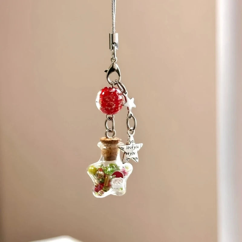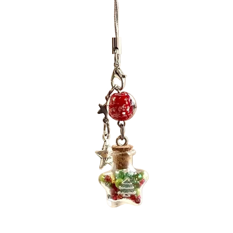 Weihnachts-Handyanhänger mit Stern und Wunschflasche